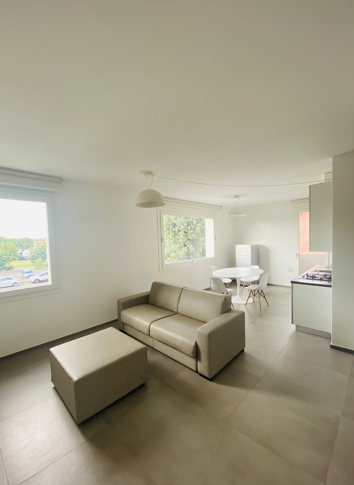 Each three-room apartment is fully furnished with special attention to space management, to offer maximum comfort while enhancing the rooms. From the choice of colours for the interiors to the precious selection of raw materials, everything is focused on aesthetic pleasure and everyday practicality. Compartments, niches and concealed solutions enhance the space without detracting from the design. The natural brightness of the rooms is complemented by the skilful placement of lighting points for a full experience of comfort.