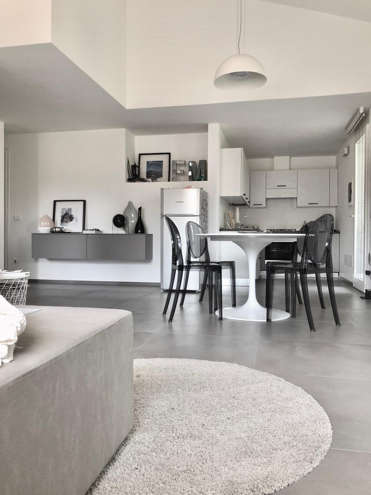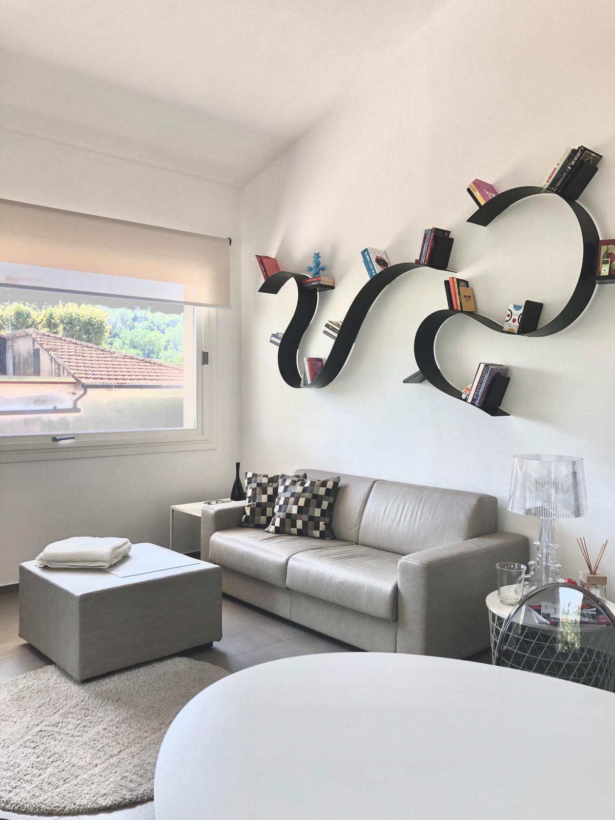 The modern kitchen is fully equipped to ensure perfect functionality. The table and chairs stand out for their design, as do the sofa and furniture in the living area. Every detail is designed to give class and refinement to the environment, while contributing to the flat’s comfort. The result is a two-room apartment furnished with refined originality and first-rate materials, ideal for those who love elegance even in everyday life.