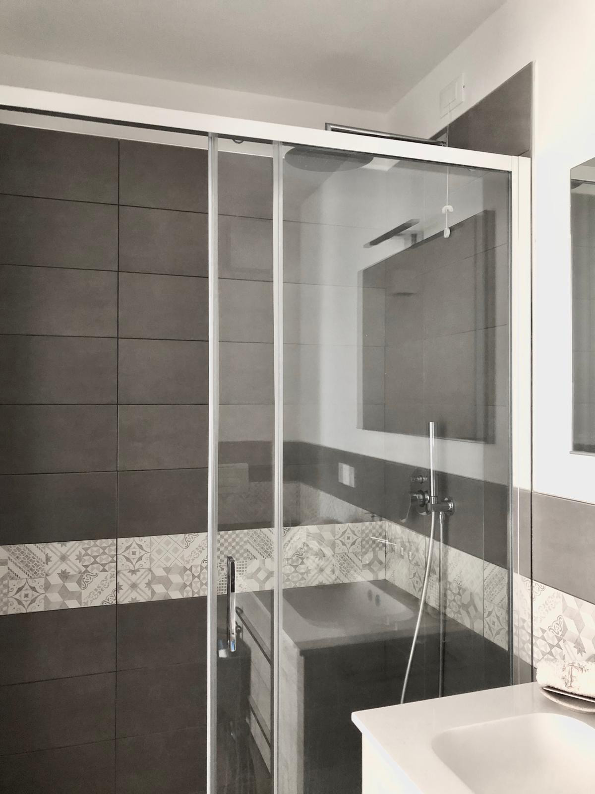 The master bedroom, also furnished with style, is generously lit by a large window and complete with every comfort. No detail is left to chance and adds to the prestige of the designer interior. The bathroom with shower completes the rooms, with refined furnishing elements and fine finishes.